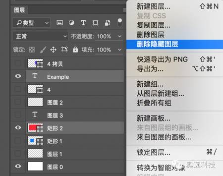 方法:点击图层面板上的菜单,删除隐藏图层