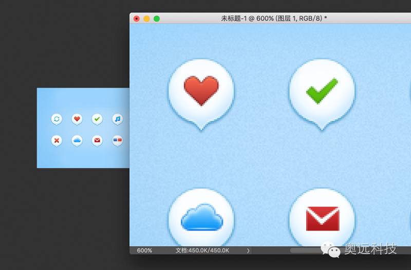 上图可以看出他们是同一个文件,左边的为原始比例(100%),而右边的则是放大600%后的图像。右边刻画成怎样,左边的原始比例都会实时更新(因为他们是同一个东西)。
